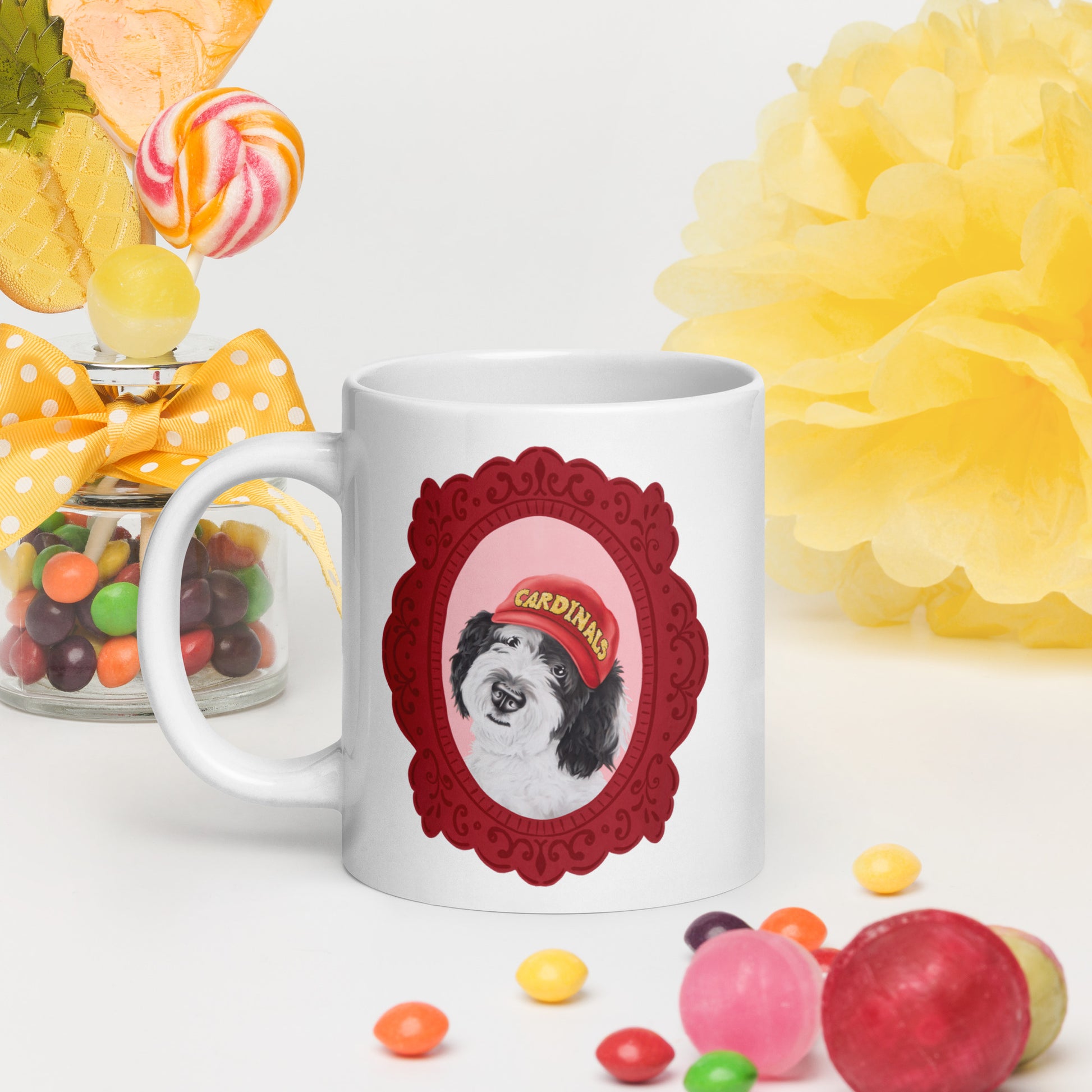 Start your day with a little personality in hand. This 20 oz coffee mug features one of my original dog paintings, framed in a hand-drawn border that feels equal parts storybook and heirloom.